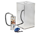 Комплект состоит из дымогенератора, в который закладывается деревянная щепа, электрического компрессора для нагнетания воздуха и силиконового шланга.Гофрированная трубка пропускает дым в емкость с обрабатываемыми продуктами. Мощность потока несложно отрегулировать при помощи переключателя на компрессоре.